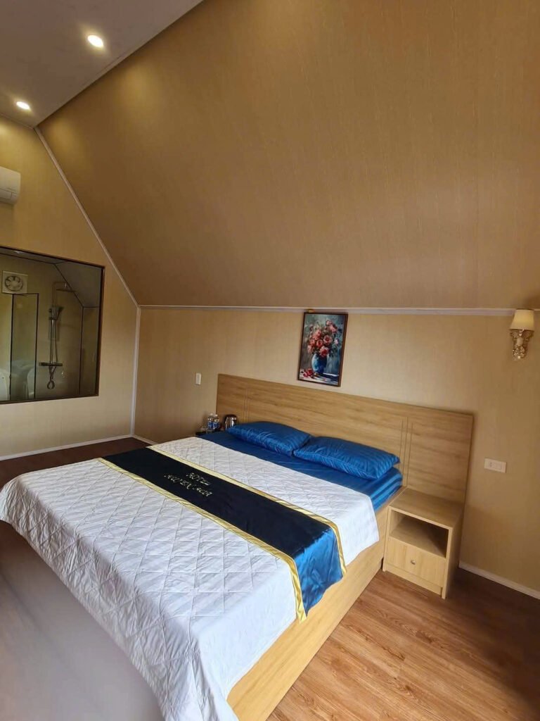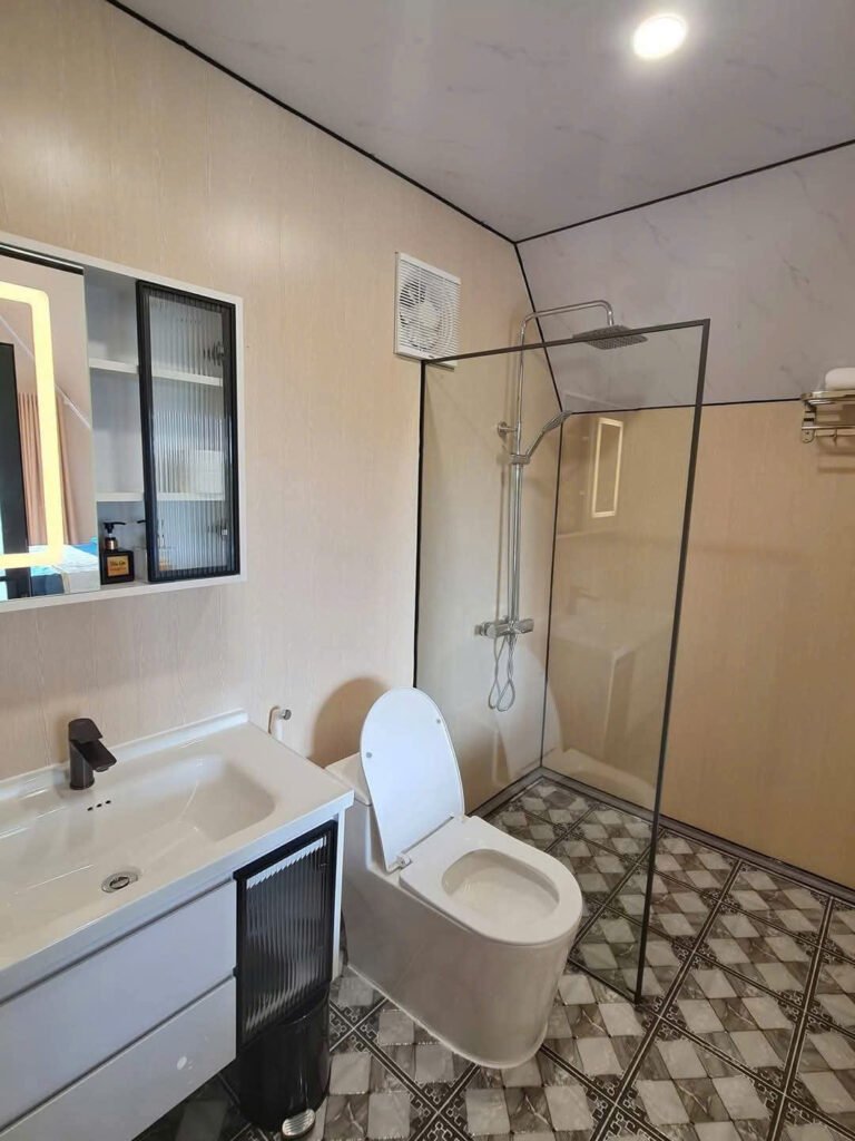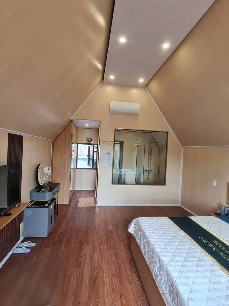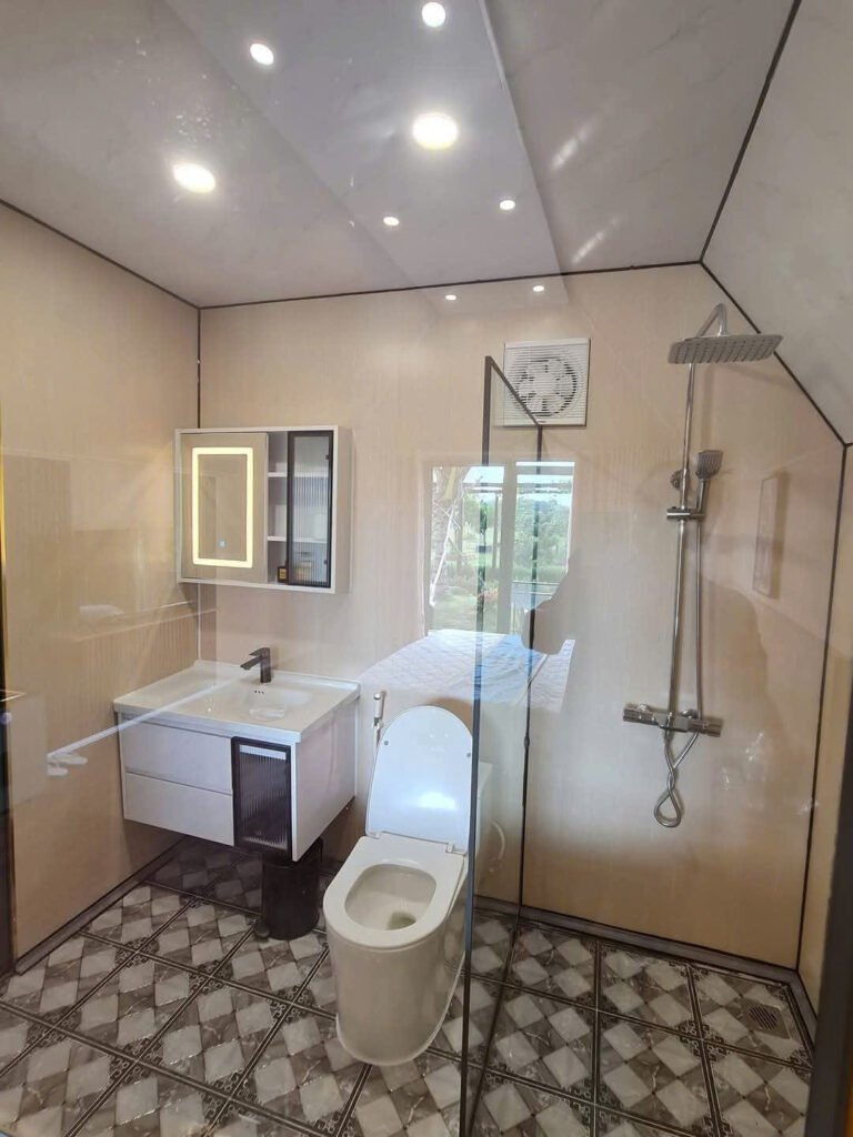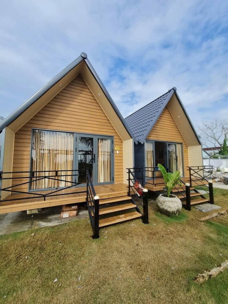 Nhà lắp ghép bungalow chữ A có toilet diện tích 32m2.