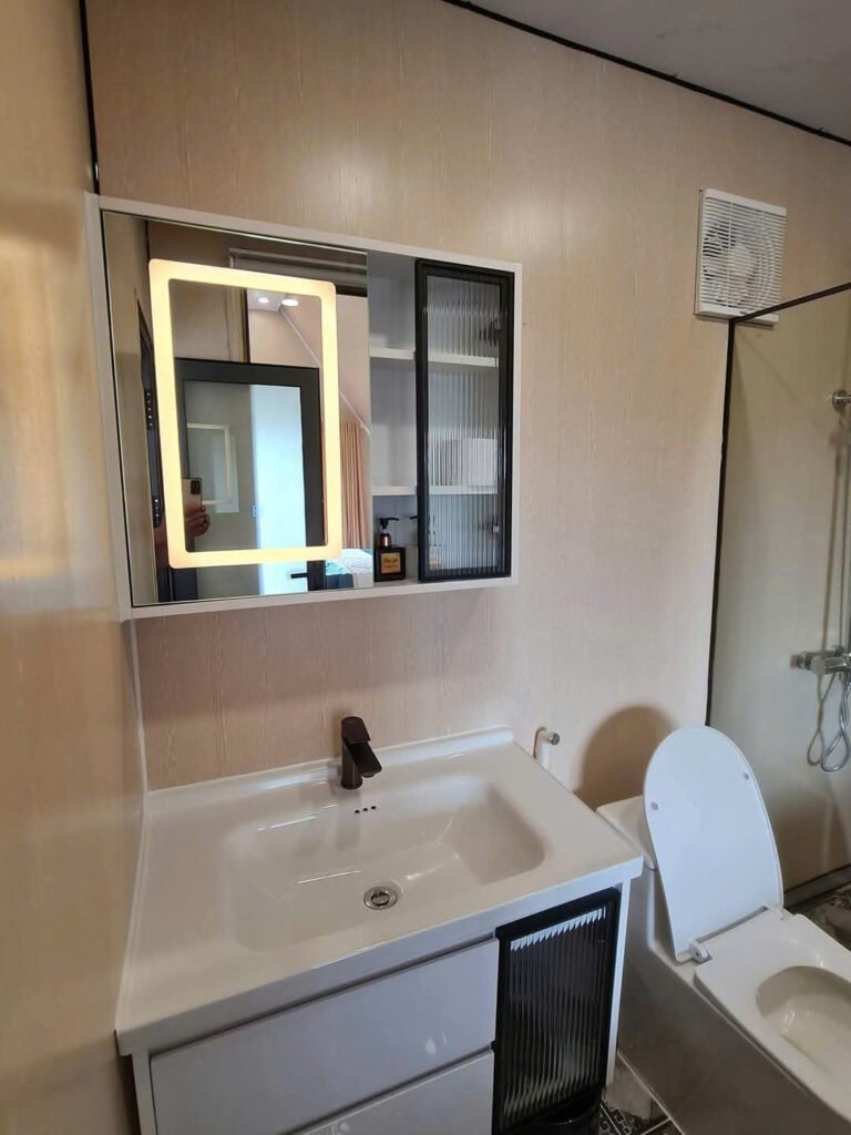 Lavabo kèm gương soi, tủ chứa đồ